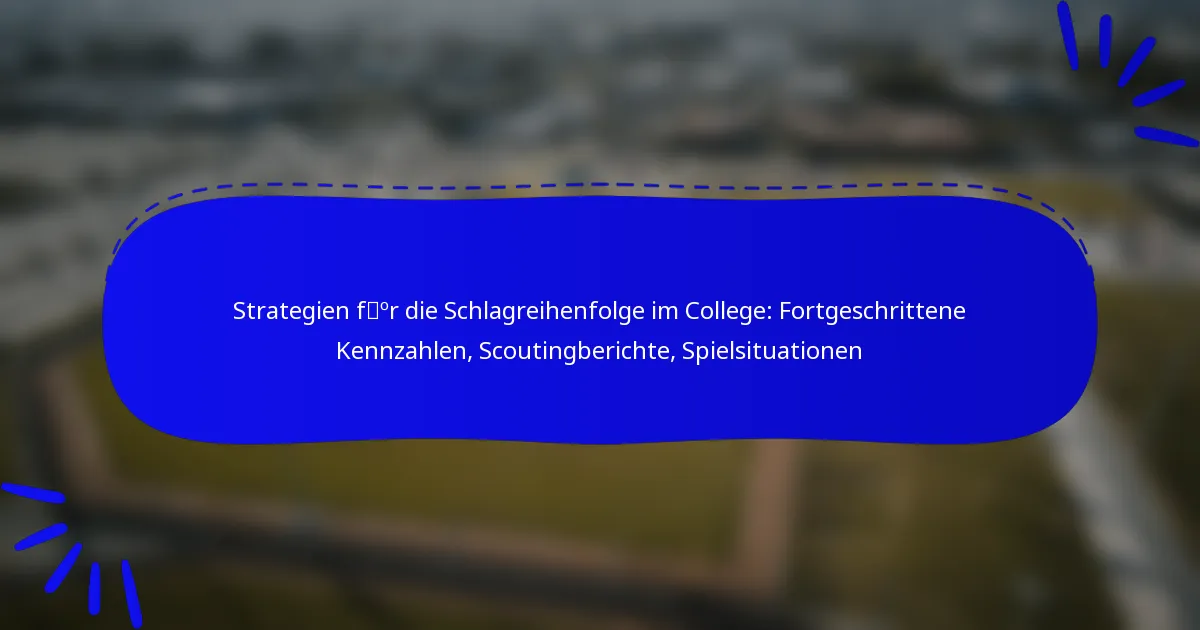 Im College-Baseball erfordert der Aufbau einer effektiven Schlagreihenfolge ein tiefes Verständnis für fortgeschrittene Kennzahlen wie On-Base-Prozentsatz und Slugging-Prozentsatz, die Trainern helfen, die Leistung der Spieler zu bewerten. Scouting-Berichte verbessern diese Strategien weiter, indem sie die Stärken der Spieler und die Schwächen der Gegner aufzeigen, was maßgeschneiderte Aufstellungen ermöglicht. Darüber hinaus ist es entscheidend, Spielsituationen wie den Spielstand, das Inning und den Typ des Pitchers zu berücksichtigen, um die Effektivität der Schlagreihenfolge zu maximieren.