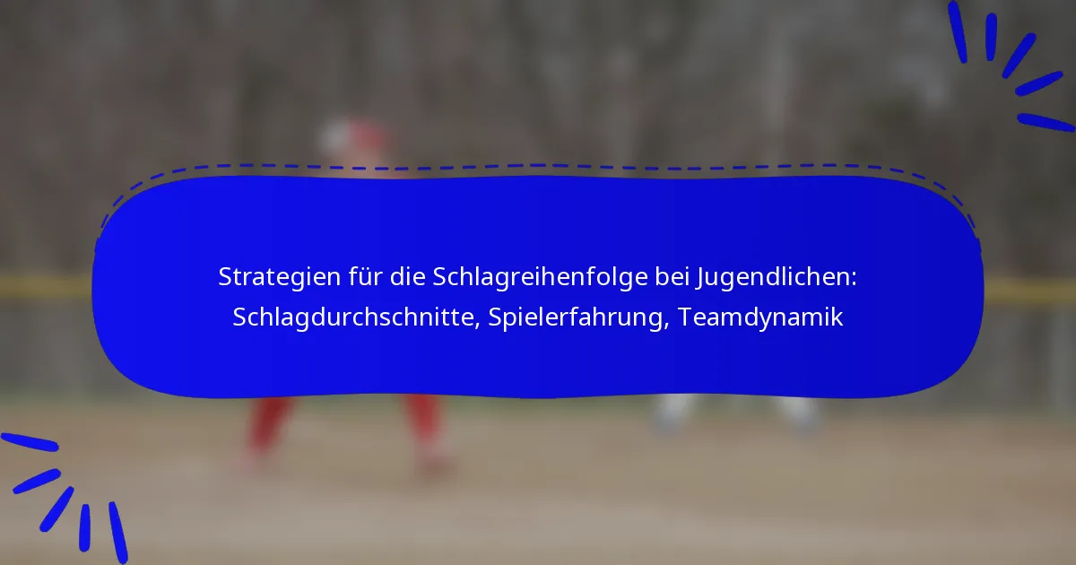 Die Strategien zur Schlagreihenfolge bei Jugendlichen werden von mehreren Schlüsselfaktoren beeinflusst, darunter Schlagdurchschnitt, Spielerfahrung, Teamdynamik, Trainerphilosophien, Spielerpositionen und individuelle Fähigkeiten. Das Verständnis dieser Elemente hilft Trainern, ihre Aufstellung für eine bessere Leistung auf dem Feld zu optimieren.